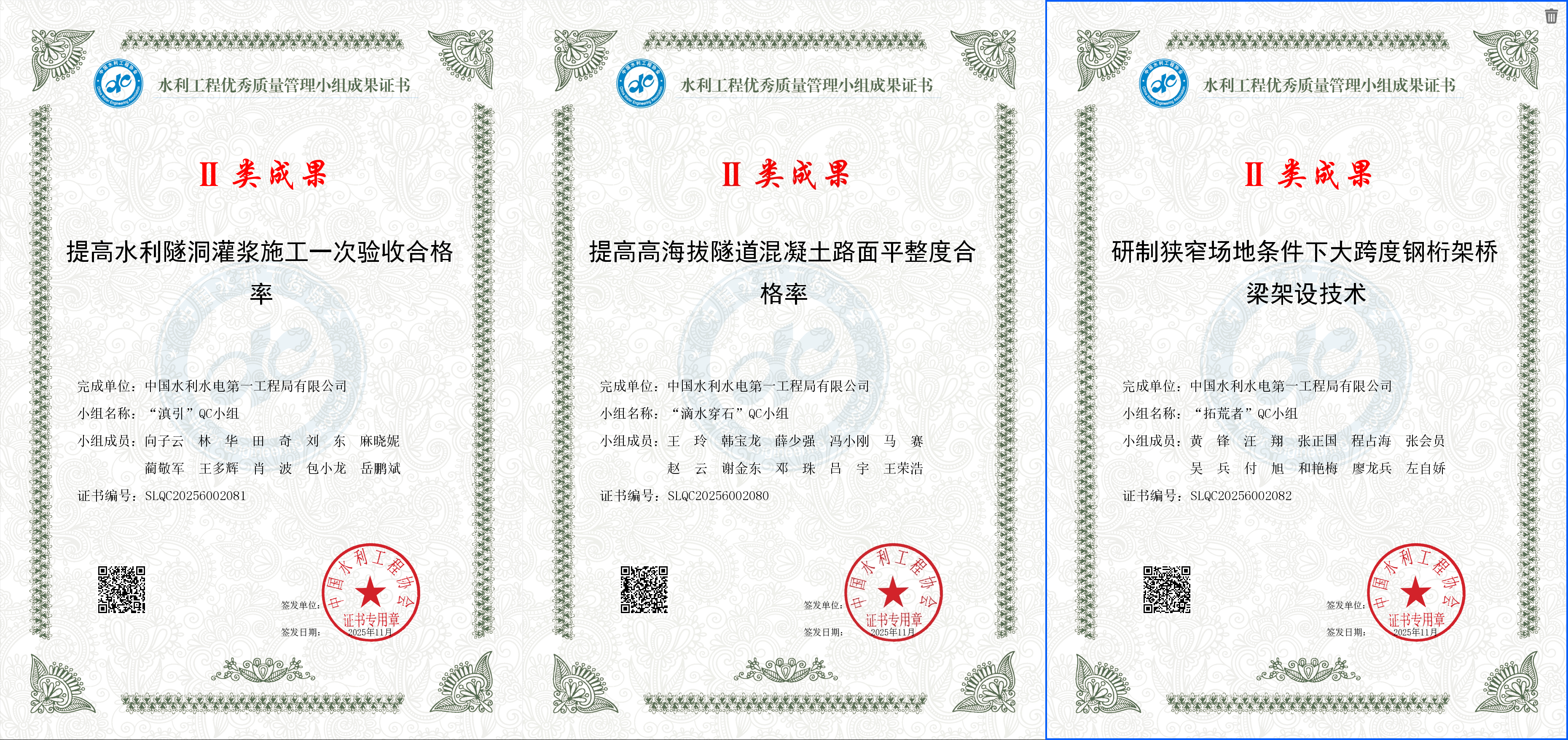喜報!公司7項成果入選全國水利工程優(yōu)秀質(zhì)量管理獎